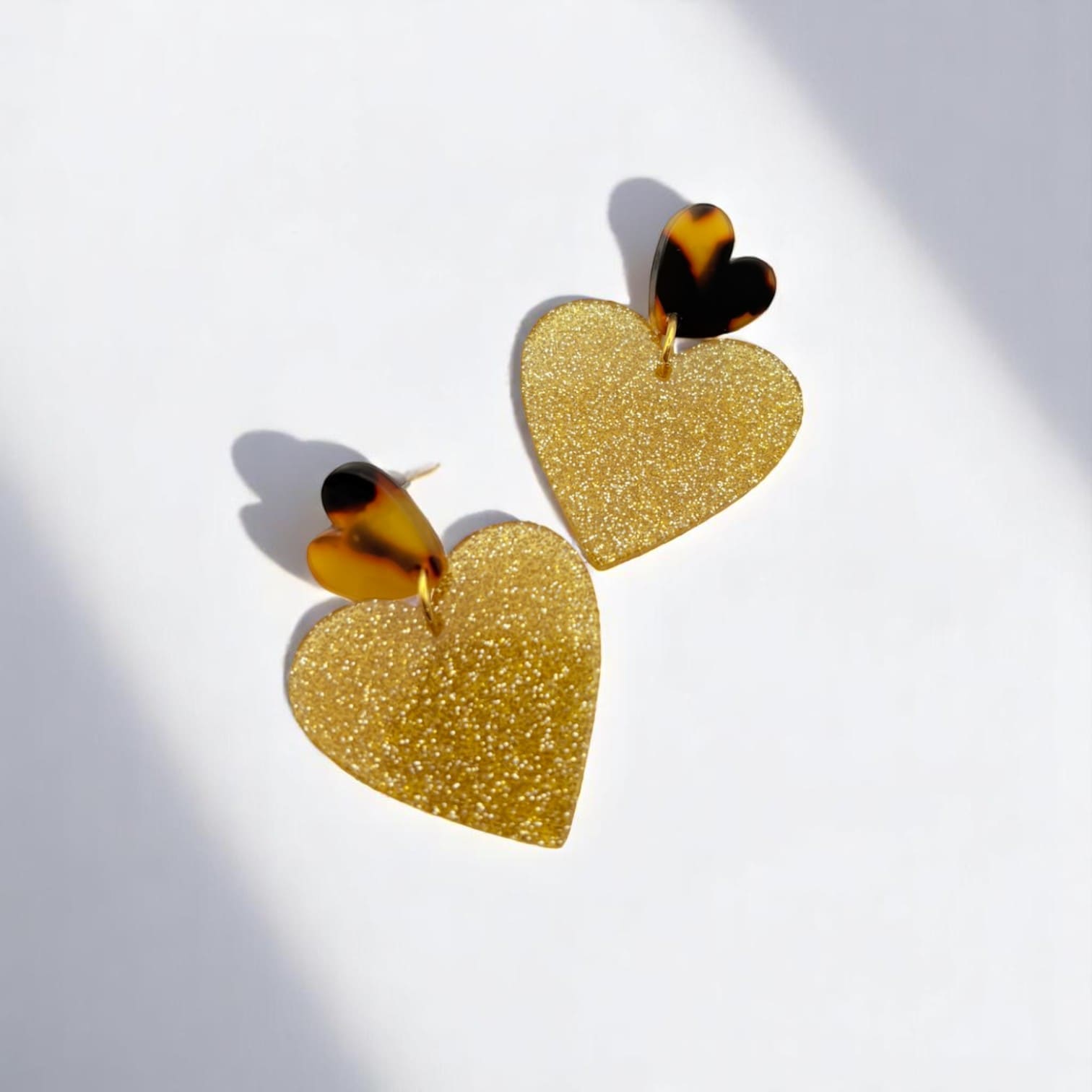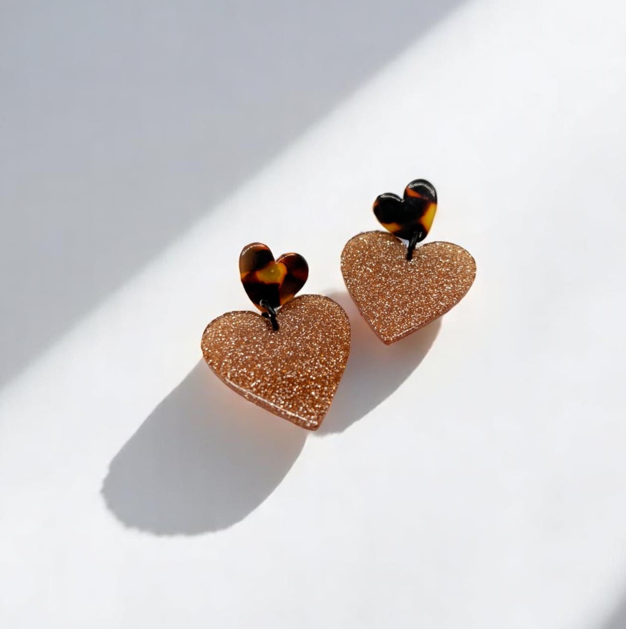Les boucles d’oreilles en résine en forme de coeur paillettes et léopard Alba sont assemblées dans mon atelier à Marseille. Disponibles en deux coloris : bronze et doré avec une base en écailles