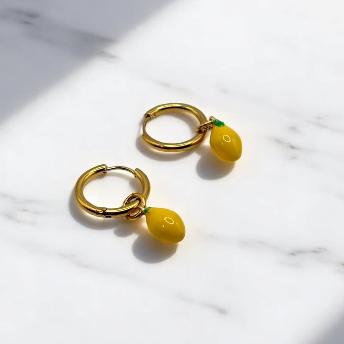 Les boucles d’oreilles créoles citron Limona ont en acier inoxydable.