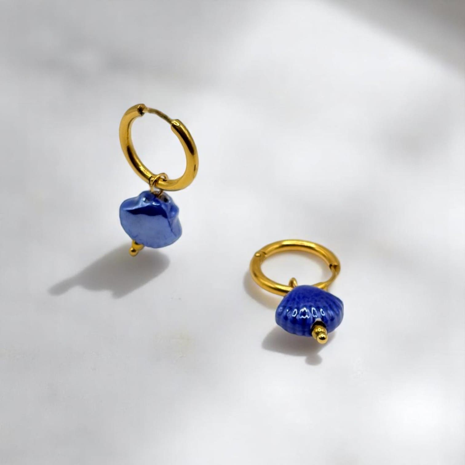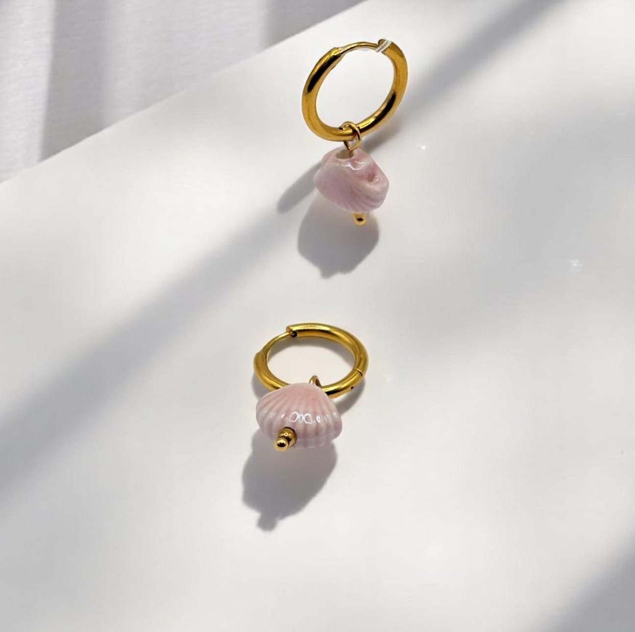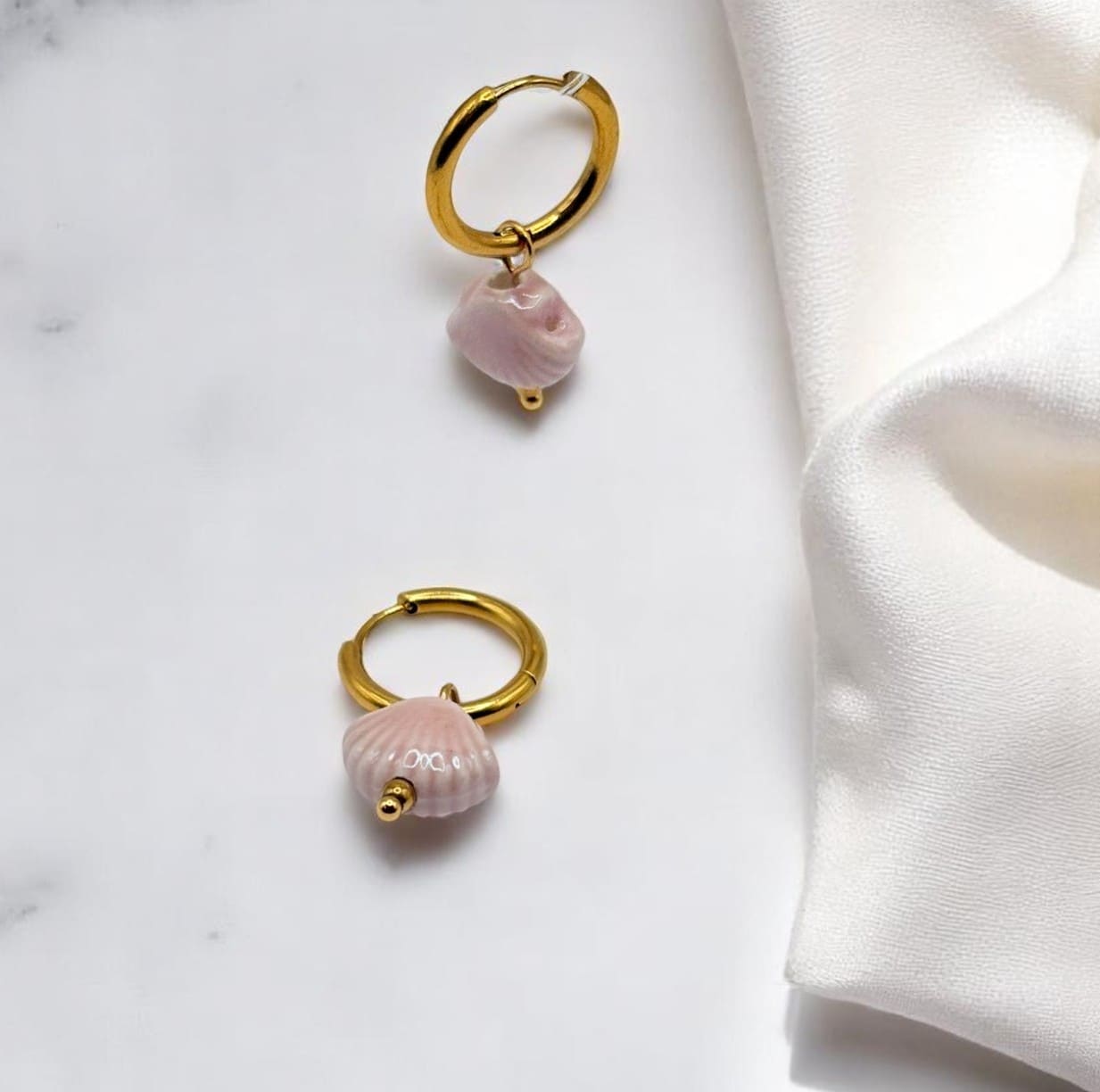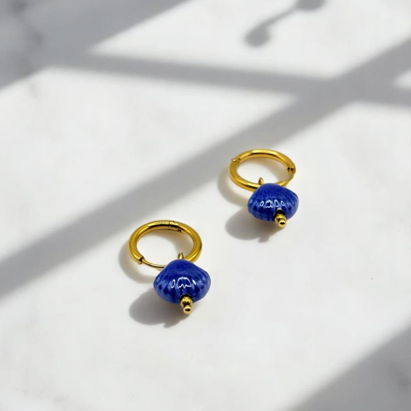 Les boucles d’oreilles créole avec coquillage Shella sont fabriquées en acier inoxydable. Disponibles en deux coloris : bleu et rose