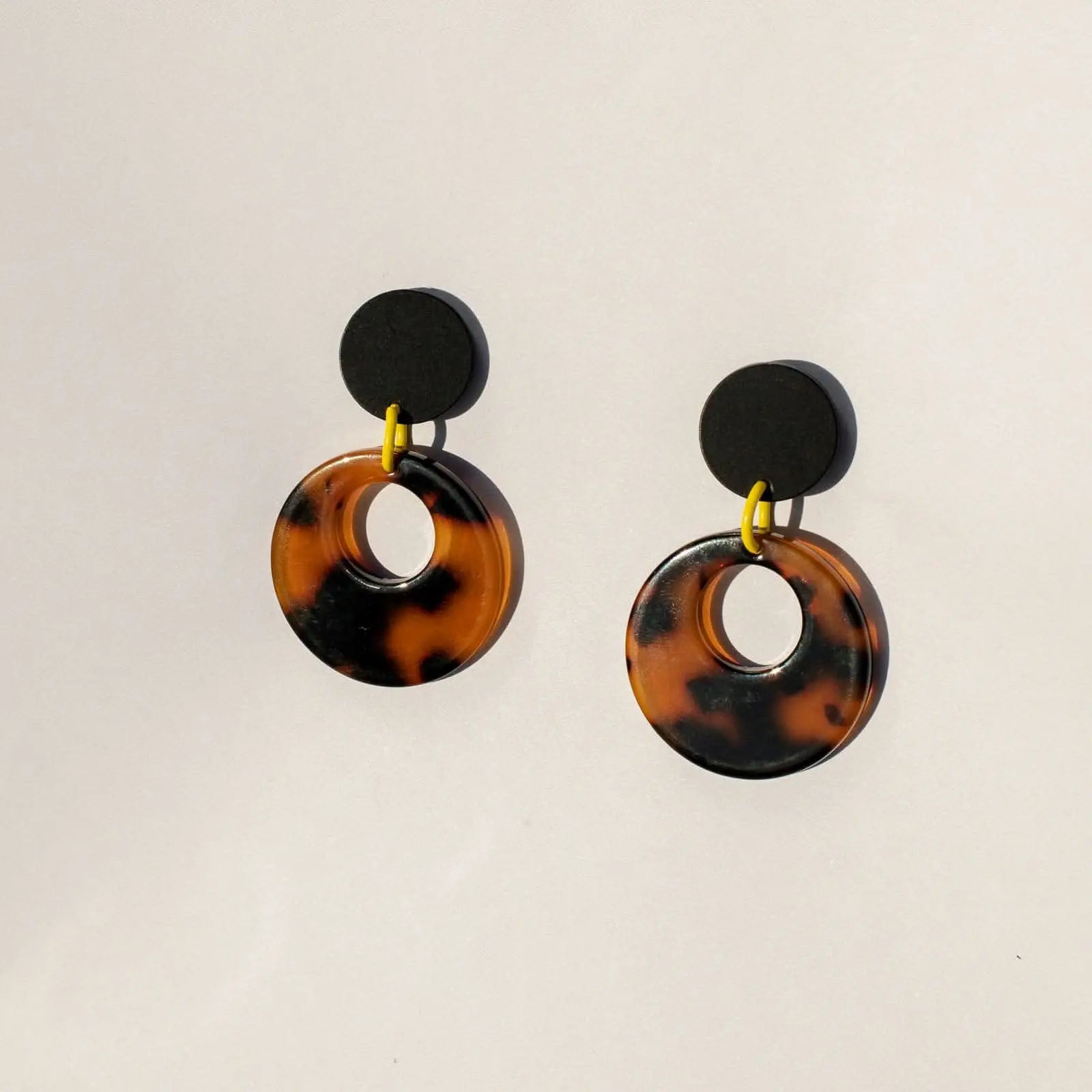Les boucles d’oreilles en résine écailles léopard Aria sont assemblées dans mon atelier à Marseille.