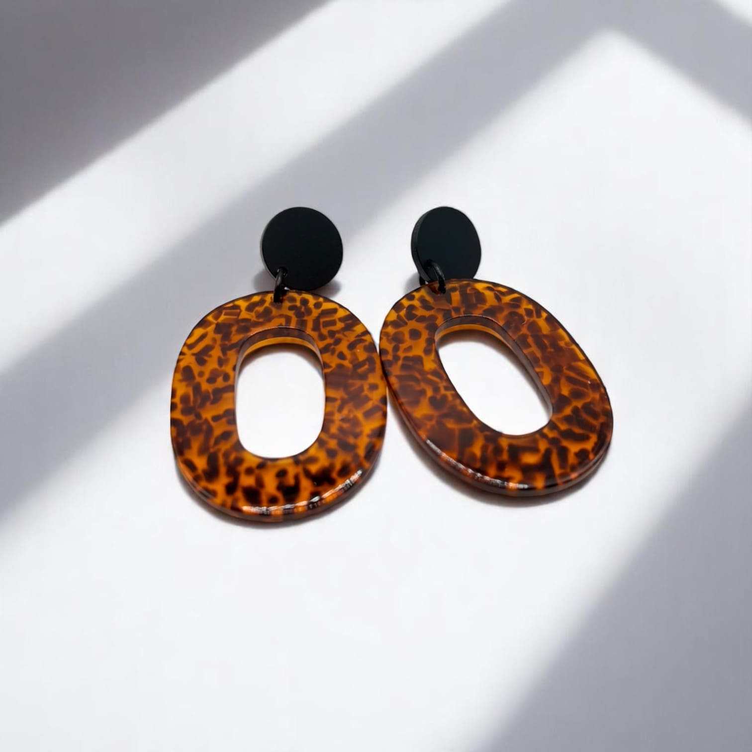 Les boucles d’oreilles en résine en imprimé léopard tacheté Sophia sont assemblées dans mon atelier à Marseille. Disponibles en deux coloris : noir et bleu électrique avec pendant imprimé léopard