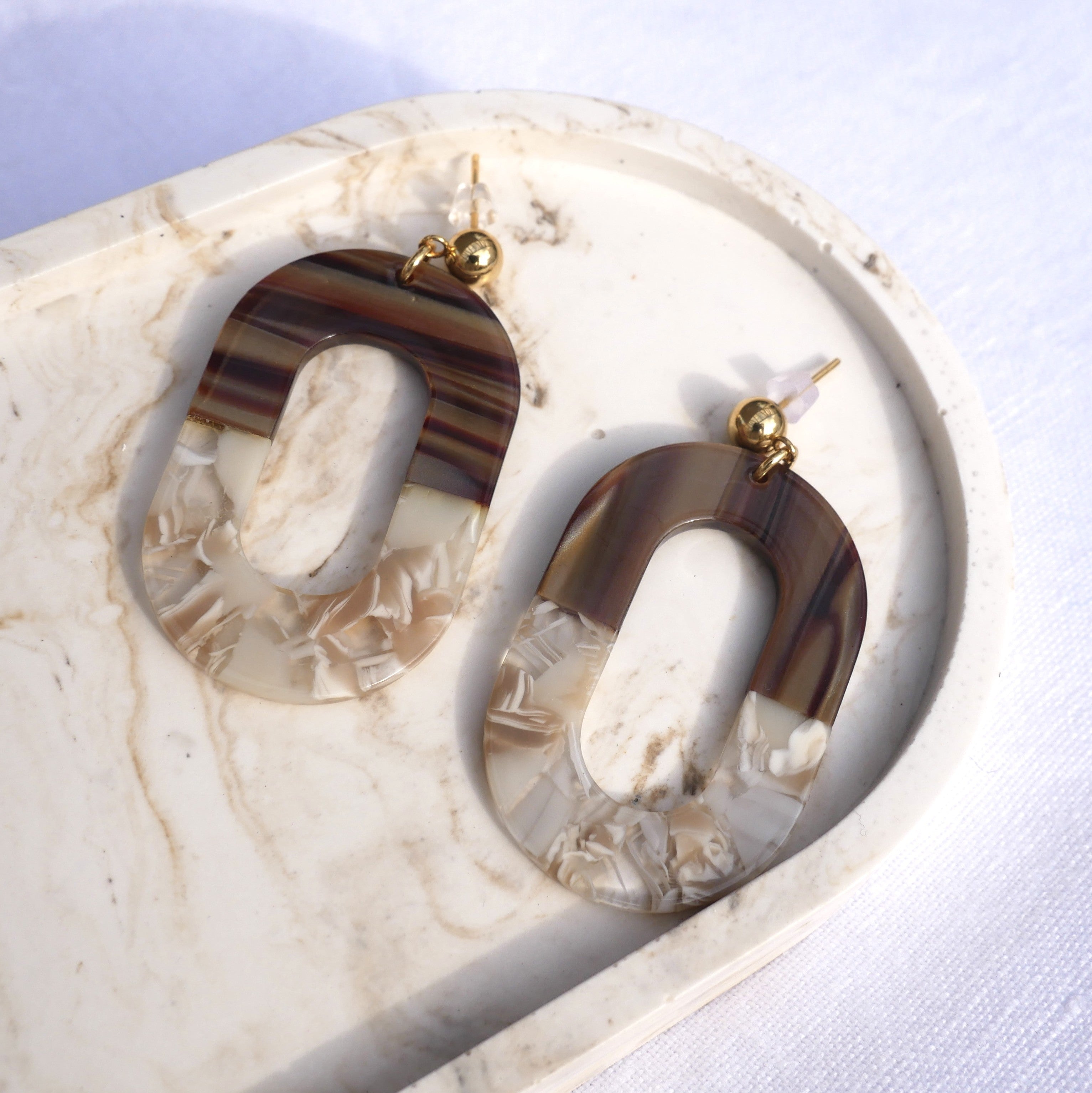 Nos boucles d’oreilles pendantes même les plus imposantes (7 cm) sont hyper légères puisqu’elles pèsent entre 2 et 4 grammes contre une vingtaine de grammes parfois chez d’autres marques de bijoux.