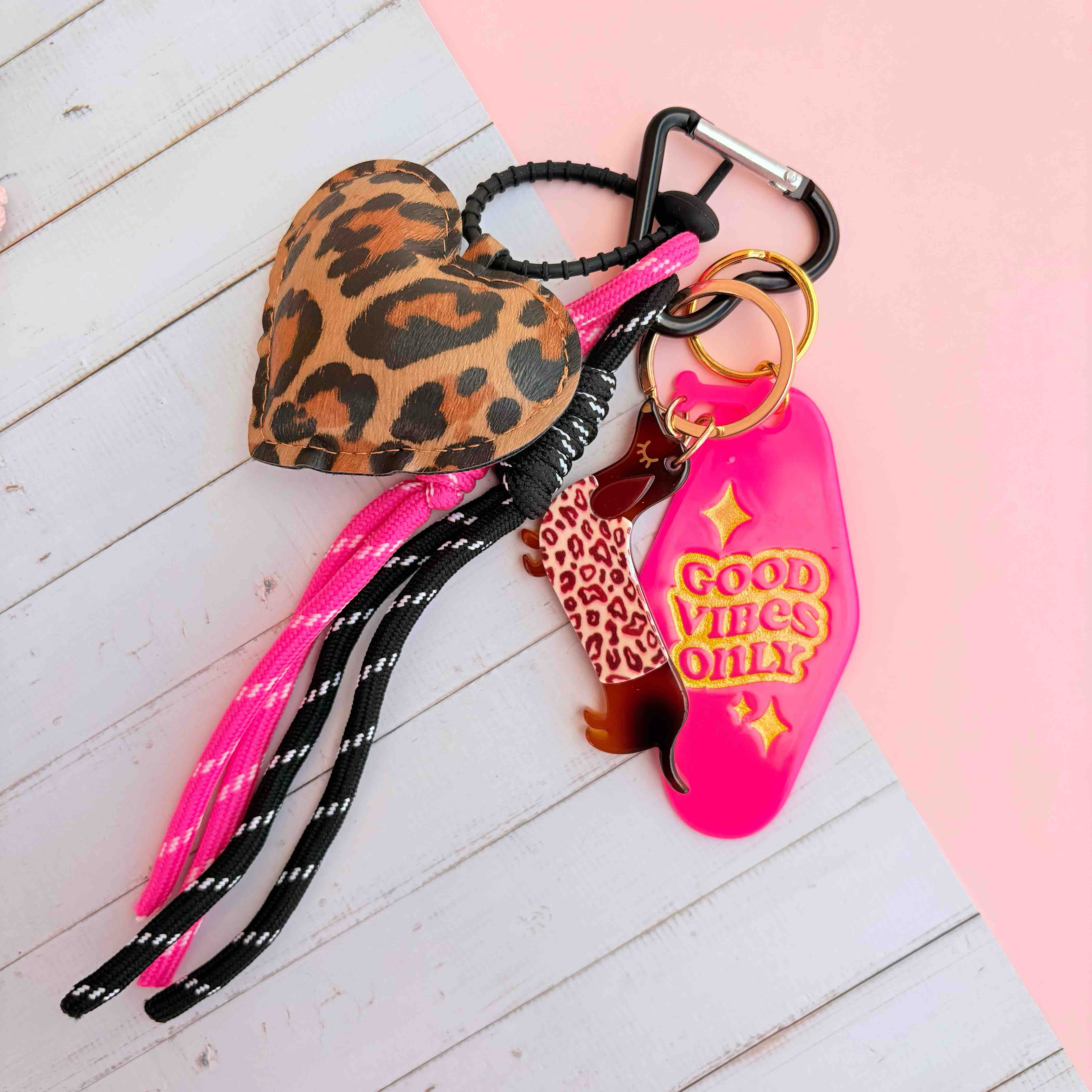 Ajoutez une touche de douceur et d’originalité à votre sac avec ce grigri de sac chien léopard. Assemblé à la main dans mon atelier à Marseille, ce petit accessoire coloré et plein de charme est à la fois porte-bonheur, objet décoratif et unique